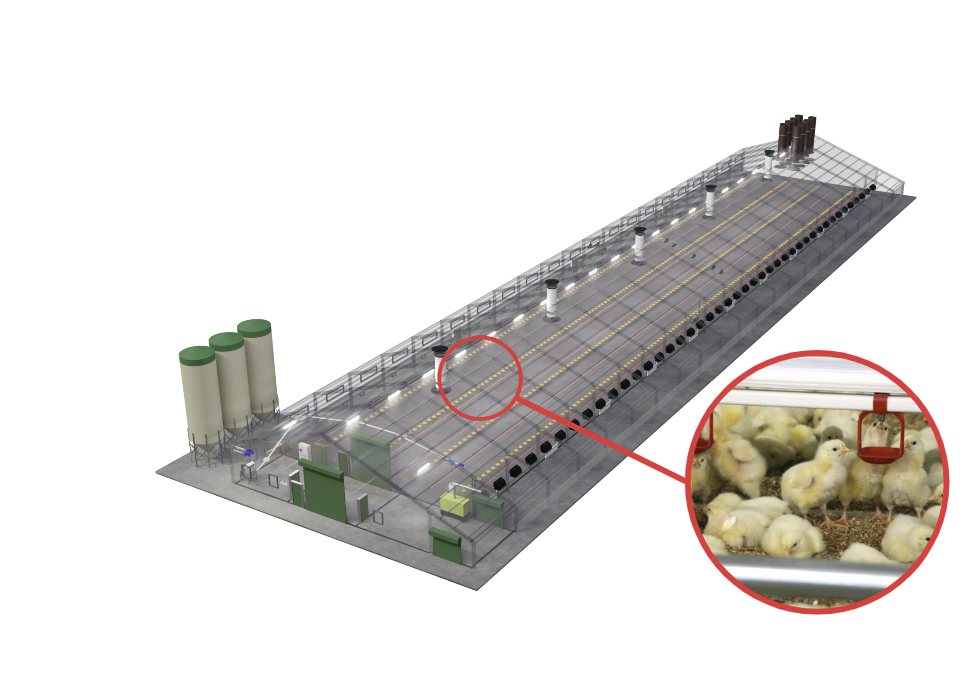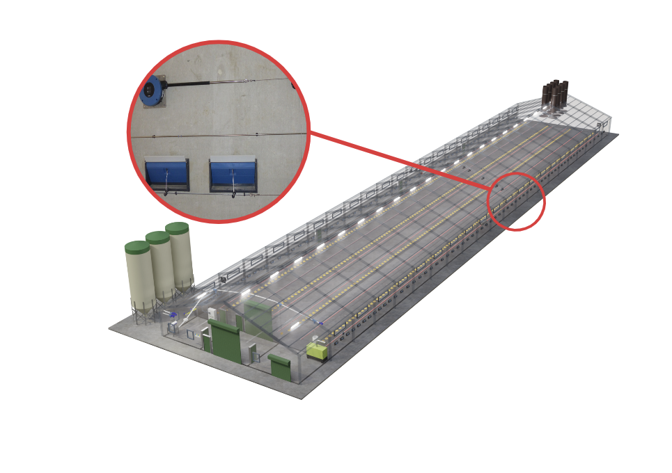Effektive Luftzufuhr ist entscheidend für die Gesundheit und das Wohlbefinden der Geflügelbestände. Unsere modernen Belüftungssysteme verteilen Frischluft gleichmäßig, verhindern schädliche Gasansammlungen und regulieren Temperatur sowie Luftfeuchtigkeit. Dies schafft ideale Bedingungen für das Wachstum und die Gesundheit der Tiere.