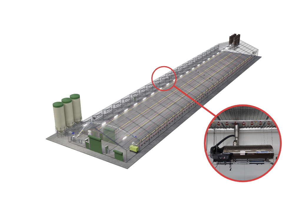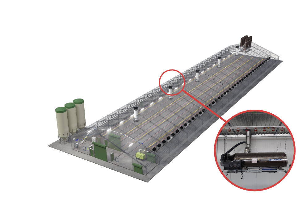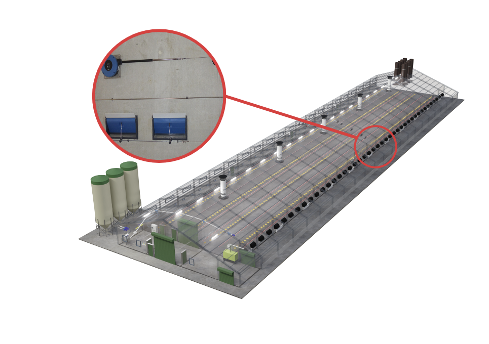 Effektive Luftzufuhr ist entscheidend für die Gesundheit und das Wohlbefinden der Geflügelbestände. Unsere modernen Belüftungssysteme verteilen Frischluft gleichmäßig, verhindern schädliche Gasansammlungen und regulieren Temperatur sowie Luftfeuchtigkeit. Dies schafft ideale Bedingungen für das Wachstum und die Gesundheit der Tiere.